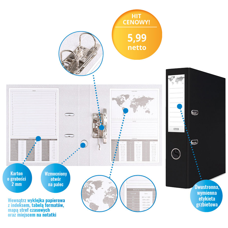 dwa ringi (R), grzbiet 2 cm, czarna (23K012A)