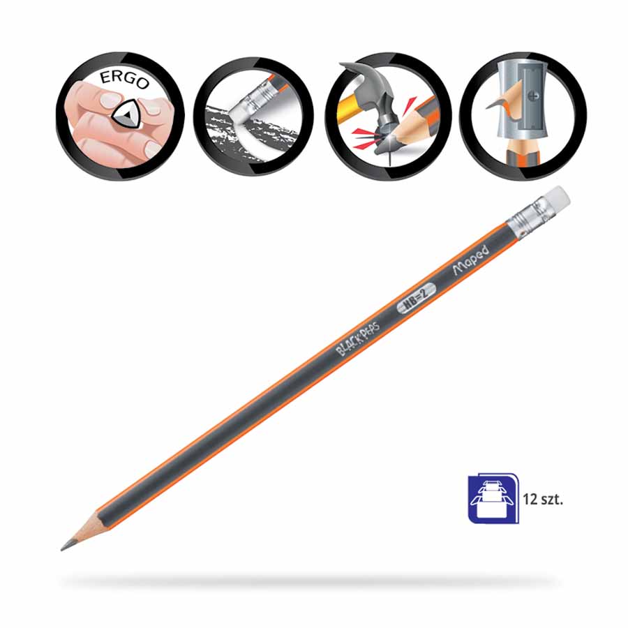 Ołówek Maped BlackPeps HB z gumką to niezastąpione narzędzie dla każdego, kto potrzebuje wysokiej jakości, wygodnego i trwałego ołówka. Wybierz Maped BlackPeps i ciesz się perfekcyjnymi rezultatami każdego dnia!