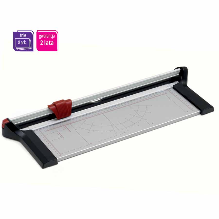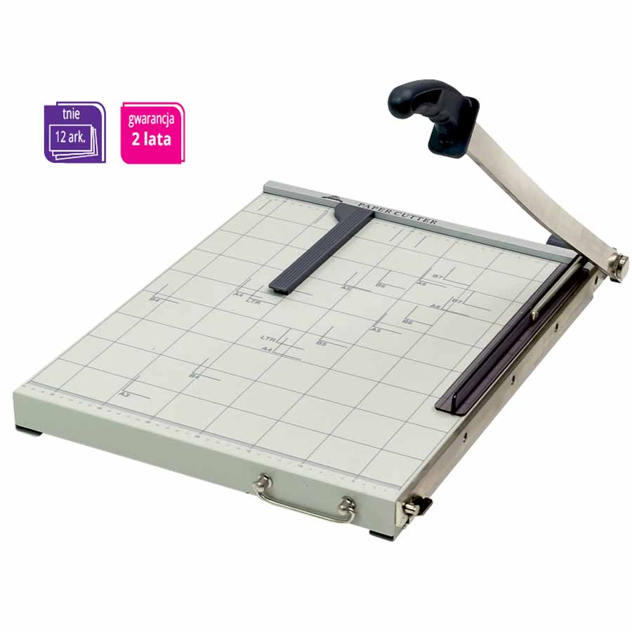 Gilotyna RC 321 N posiada kompaktowe wymiary blatu (320×190 mm), co czyni ją idealnym narzędziem do małych przestrzeni biurowych. Solidna konstrukcja i dwuletnia gwarancja gwarantują długotrwałe i bezproblemowe użytkowanie.