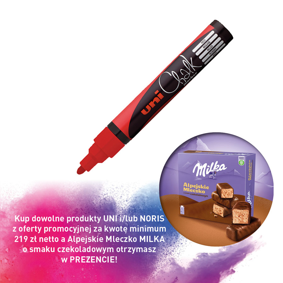 jm.: Kup dowolne produkty UNI i/lub NORIS z oferty promocyjnej za kwotę minimum 219 zł netto a Alpejskie Mleczko MILKA o smaku czekoladowym otrzymasz w PREZENCIE!