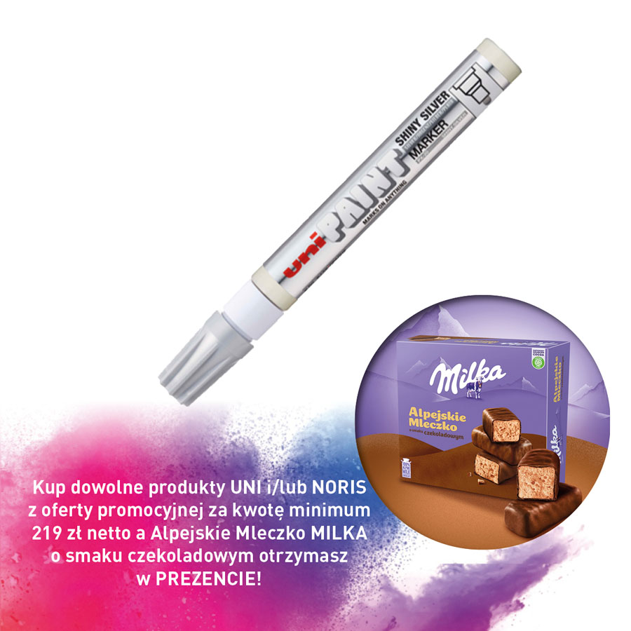 jm.: Kup dowolne produkty UNI i/lub NORIS z oferty promocyjnej za kwotę minimum 219 zł netto a Alpejskie Mleczko MILKA o smaku czekoladowym otrzymasz w PREZENCIE!
