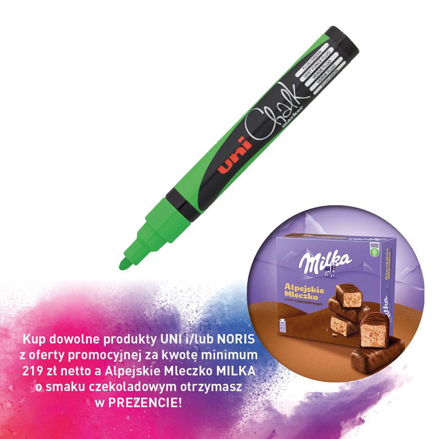 jm.: Kup dowolne produkty UNI i/lub NORIS z oferty promocyjnej za kwotę minimum 219 zł netto a Alpejskie Mleczko MILKA o smaku czekoladowym otrzymasz w PREZENCIE!