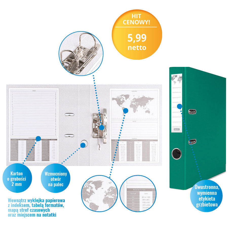 mieści różne kombinacje pudeł i segregatorów (max. 8 segr.A4/70 mm lub 6 pudeł 100 mm)