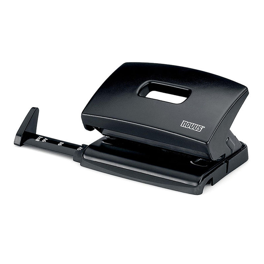 dziurkacz do 20 kartek mechanizm i podstawa metalowe, ergonomiczne plastikowe ramię (ABS) bolce dziurkujące ze stali nierdzewnej głębokość wsuwania kartek: 12mm odstęp pomiędzy dziurkami: 80mm średnica dziurki: 5,5mm ogranicznik formatu: Q1, US-Quart, 888, Folio, A4, A3-E, A5, A6, B5, B6, Ex antypoślizgowa plastikowa nakładka na podstawę podwójny wskaźnik środka strony posiada blokadę ramienia w postaci wyjmowanego plastikowego ogranicznika na dziurkaczu nadrukowana nazwa marki pakowany po 1szt. w kartonowe pudełko gwarancja 10 lat kolor: czarny