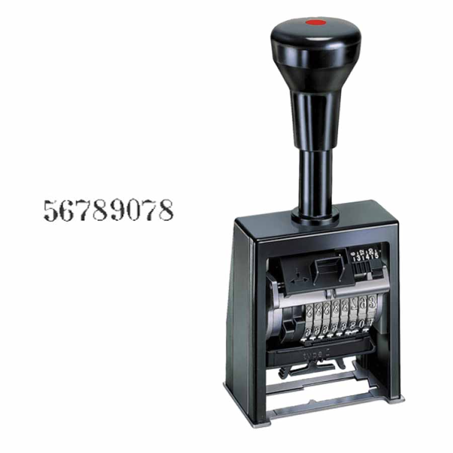 wykonany z metalu z ergonomicznym plastikowym uchwytem funkcja automatycznego numerowania stron co oznacza, że każdy kolejny numer jest większy o jeden funkcja powtarzania: 0, 1, 2, 3, 4, 5, 6, 12 funkcja wolnego pola wysokość czcionki: 4,5 mm wyposażony w blokadę uchwytu w komplecie pojemnik z tuszem w kolorze czarnym, dwa wymienne wkłady w kolorze białym, plastikowy przyrząd do regulacji pierścieni kolor: srebrny