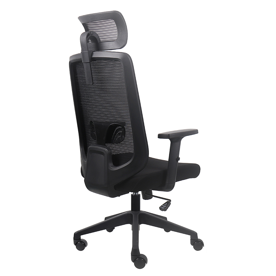 Fotel wyposażono w regulację wysokości oraz kąta nachylenia zagłówka, a także regulowane podparcie lędźwi, które wspiera kręgosłup w odcinku dolnym. Regulowane podłokietniki 1D umożliwiają dostosowanie wysokości, zwiększając wygodę podczas pracy przy biurku.