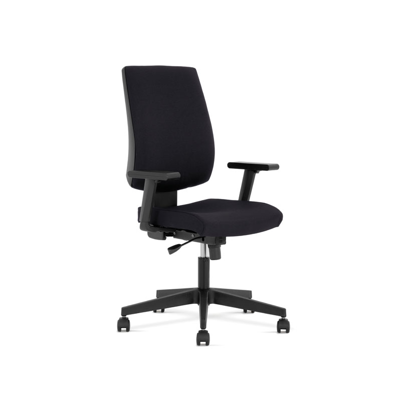 MULTIPRO wyróżnia się zdejmowanym wieszakiem na ubrania, który zwiększa wygodę użytkowania w przestrzeni biurowej. Mechanizm kołysania z możliwością blokady w trzech pozycjach pozwala na relaks w przerwach między obowiązkami. Stabilna, pięcioramienna nylonowa podstawa oraz kółka do powierzchni twardych zapewniają trwałość i mobilność fotela.