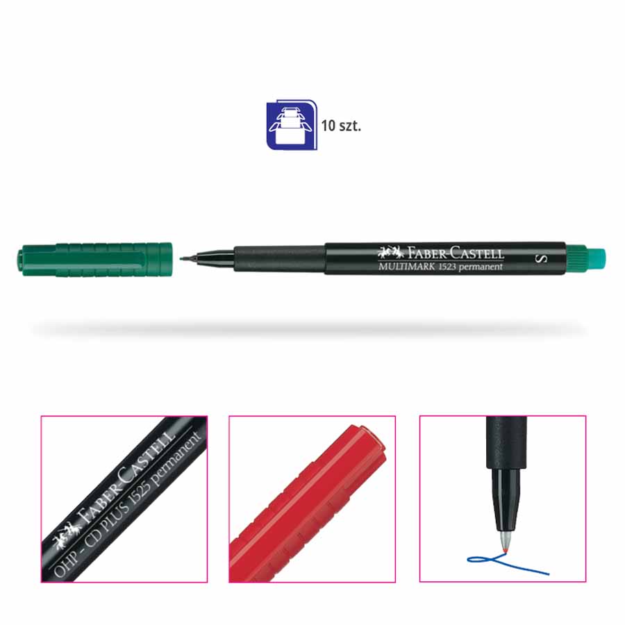 Foliopis Multimark Faber-Castell M 1 mm w kolorze zielonym to wysokiej jakości permanentny pisak, który gwarantuje trwałość i wyrazistość pisma na różnych powierzchniach. Dzięki precyzyjnej końcówce 1 mm możesz pisać z dużą dokładnością, co jest niezwykle ważne podczas pracy na folii czy innych gładkich materiałach.