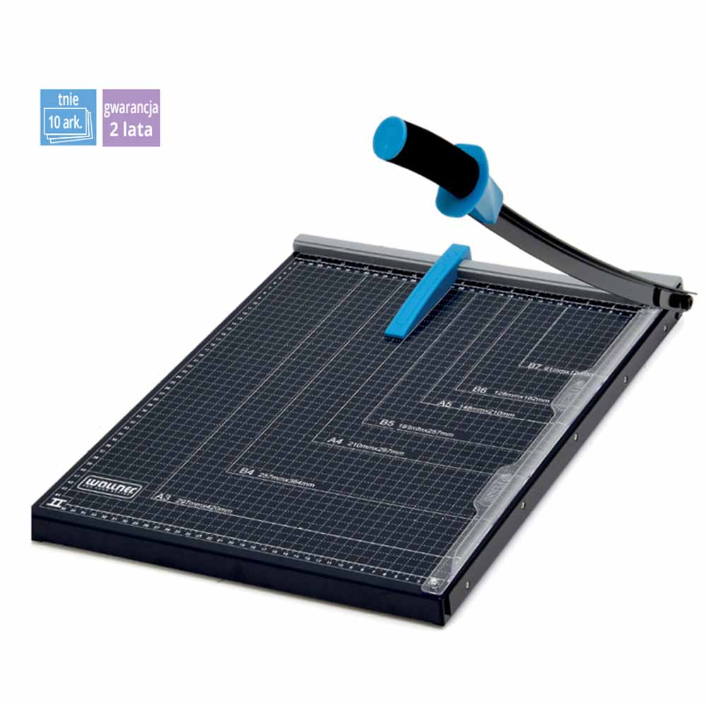 Gilotyna RC 321 N posiada kompaktowe wymiary blatu (320×190 mm), co czyni ją idealnym narzędziem do małych przestrzeni biurowych. Solidna konstrukcja i dwuletnia gwarancja gwarantują długotrwałe i bezproblemowe użytkowanie.