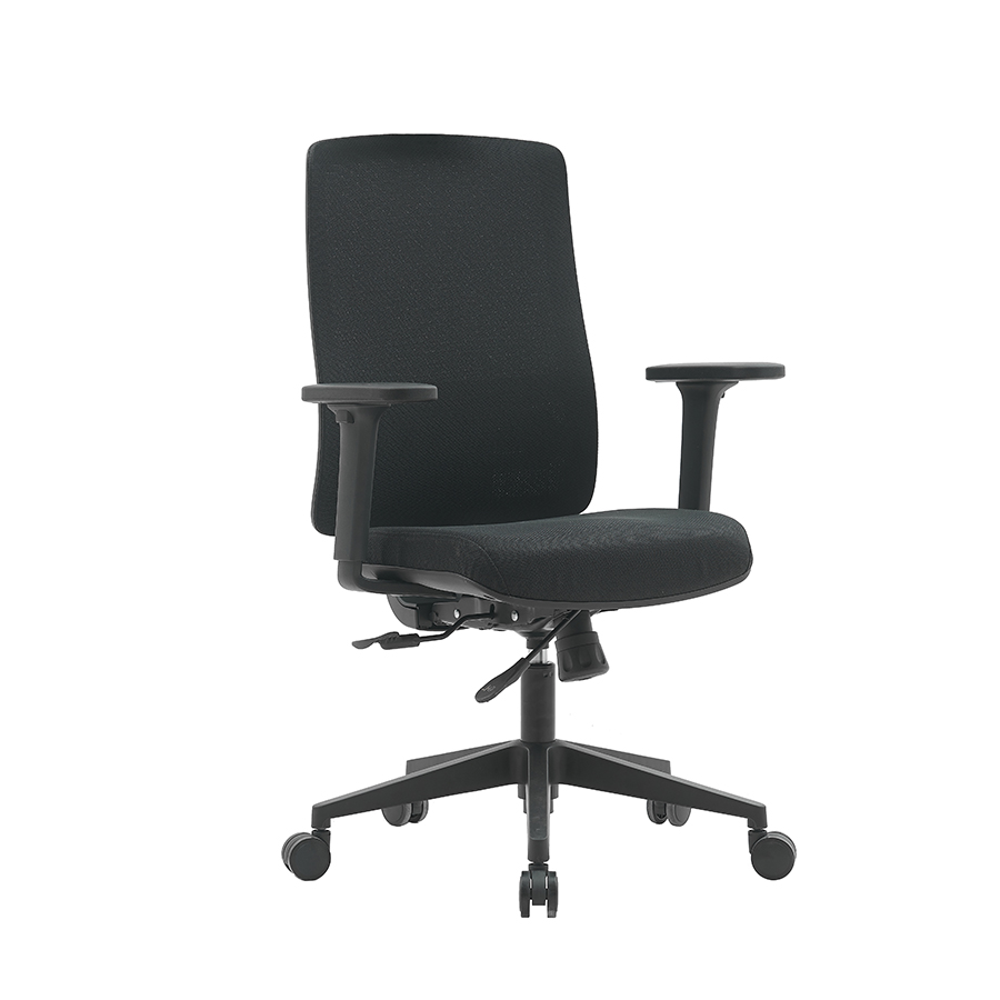 wygodny fotel biurowy z pokryty ekoskórą, tapicerowany w klasyczne, poziome pasy miękkie, wypełnione pianką siedzisko mechanizm motylkowy (TILT) dający możliwość swobodnego kołysania oraz blokady pozycji do pracy stałe podparcie lędźwiowego odcinka kręgosłupa chromowane podłokietniki z miękkimi nakładkami zapewniająca stabilność pięcioramienna, stalowa, chromowana podstawa podnośnik gazowy (siłownik): 100 mm kółka nylonowe, twarde, do wszystkich typów podłóg - średnica 50 mm materiał: ekoskóra wysokość krzesła: 108- 118 cm regulacja wysokości siedziska w zakresie: 47,5 – 57,5 cm szerokość oparcia: 48 cm wysokość oparcia: 64 cm szerokość siedziska: 51 cm głębokość siedziska: 44 cm średnica podstawy: 64 cm maksymalne obciążenie: 110 kg rekomendowany czas siedzenia: do 8 godzin dziennie gwarancja: 2 lata kolor: czarny