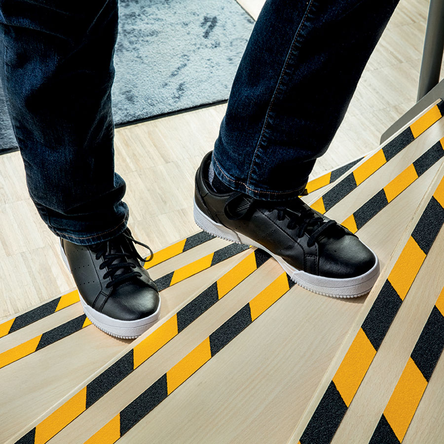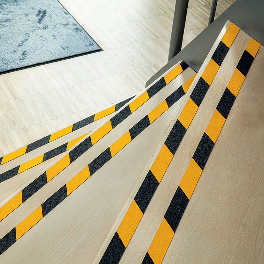 - standardowa antypoślizgowa taśma samoprzylepna do zwiększenia bezpieczeństwa traktów komunikacyjnych i powierzchni ruchu pieszego