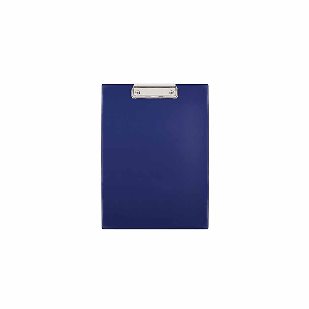 podkładka do pisania z okładką wykonana z tektury o grubości ok. 2mm pokryta wysokiej jakości PVC zacisk sprężynowy posiada metalowy zacisk z plastikowymi nakładkami spinający do 50 kartek o gramaturze 70gsm wysuwane oczko z otworem do zawieszania na ścianie na wewnętrznej stronie okładki dodatkowa kieszeń na dokumenty oraz kieszonka na długopis lub ołówek format: A4 rozmiar: 230x350mm kolor niebieski