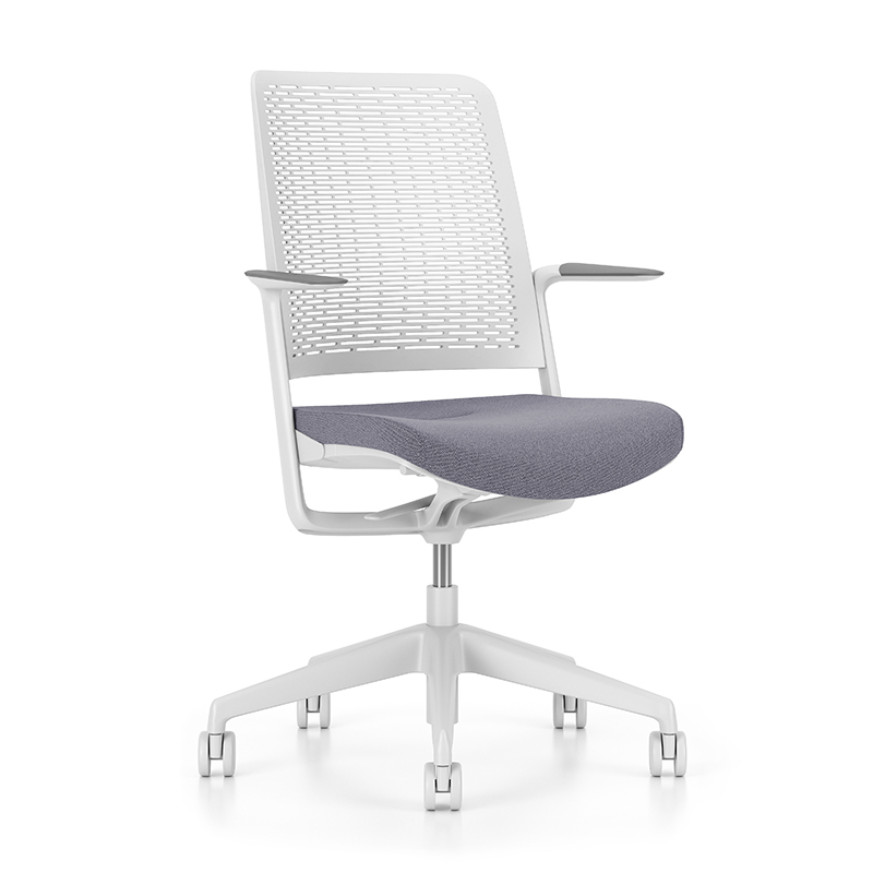 Fotel biurowy SKIATOS został zaprojektowany z myślą o wygodzie i nowoczesnej estetyce. Jego lekkie, plastikowe oparcie z imitacją siatki zapewnia odpowiednią cyrkulację powietrza, a mechanizm synchroniczny umożliwia płynne dostosowanie pozycji do indywidualnych potrzeb.