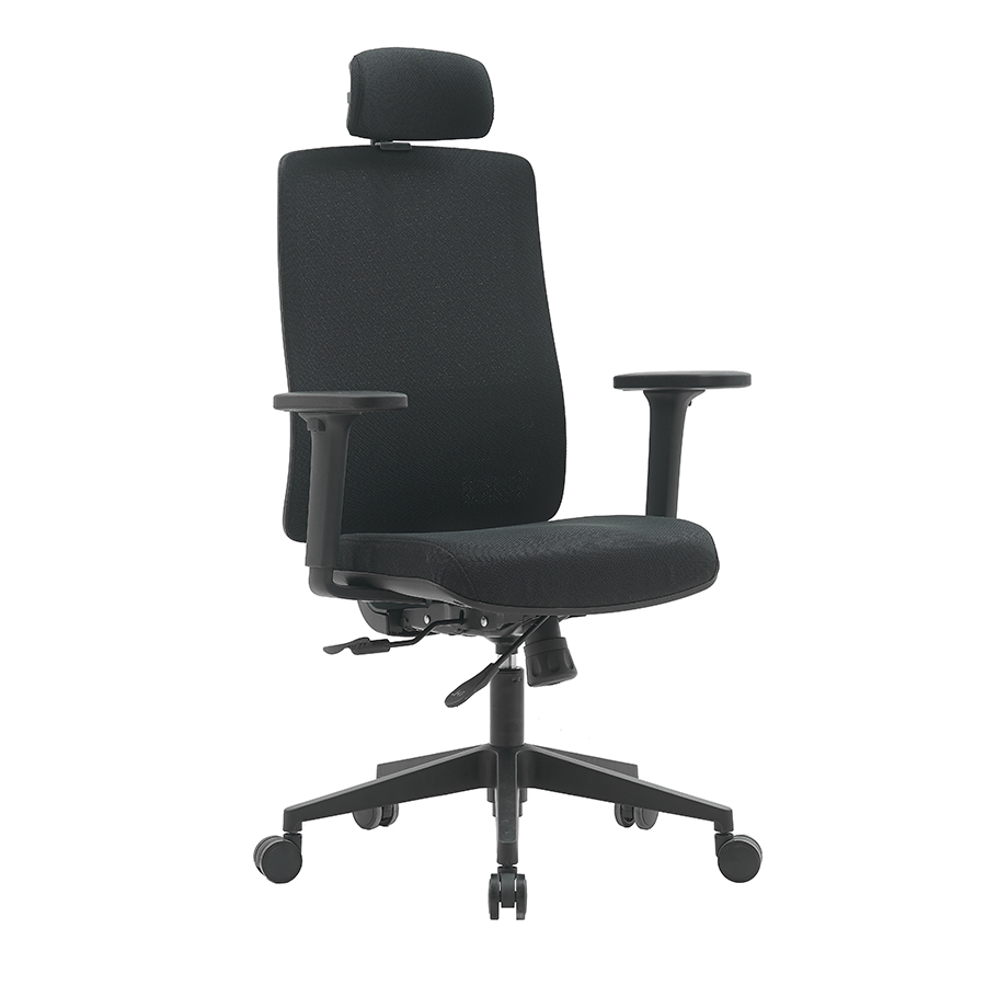 Fotel wyposażono w zaawansowany system regulacji, obejmujący zsynchronizowane odchylenie siedziska i oparcia, możliwość blokady w pięciu pozycjach oraz regulację kąta nachylenia i głębokości siedziska. System anti-shock chroni plecy przed nagłym uderzeniem oparcia, a regulowane podłokietniki i zagłówek PU zwiększają wygodę podczas długotrwałego siedzenia.