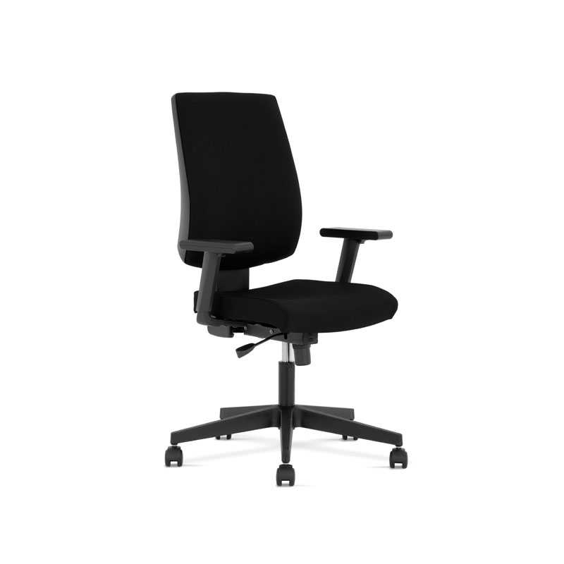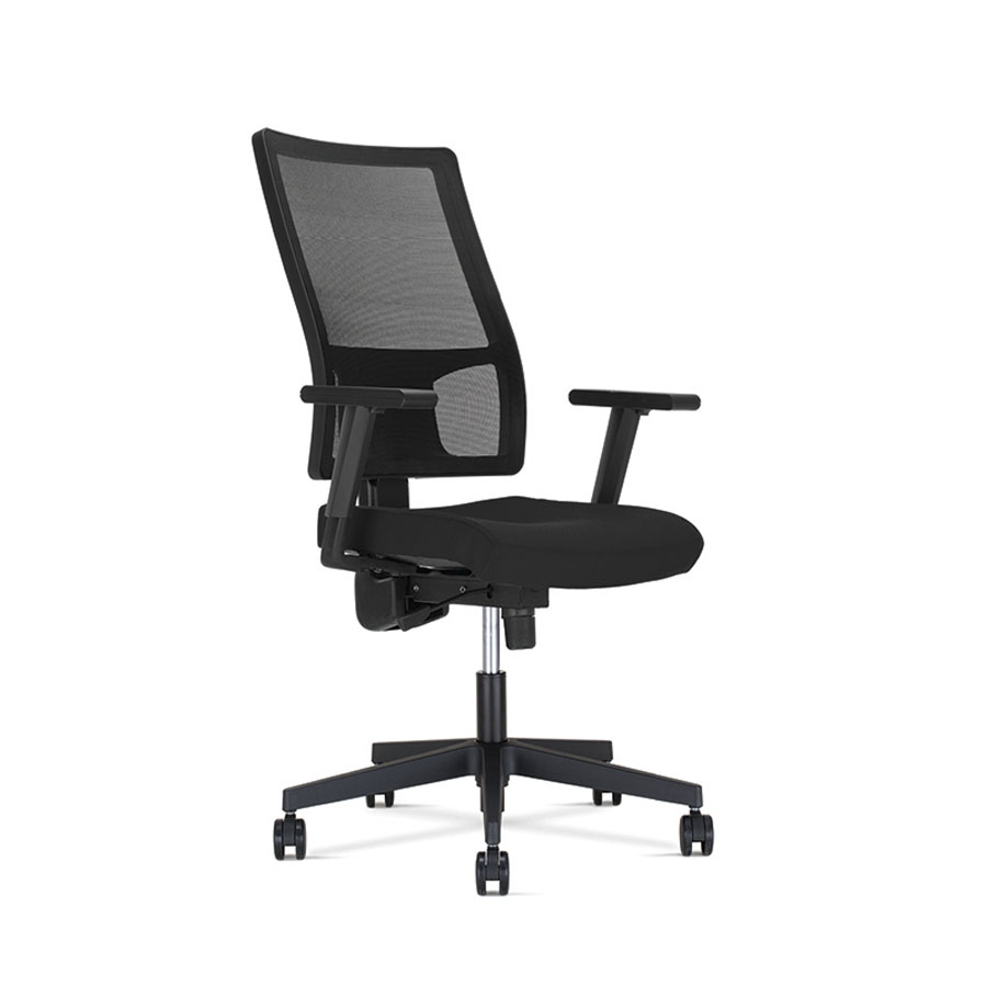 ergonomiczny, obrotowy fotel biurowy z wysokiej jakości siatką na siedzisku, oparciu i zagłówku siedzisko bez wypełnienia pianką zapewnia przepływ powietrza i podnosi komfort podczas wielogodzinnej pracy wygodne podparcie lędźwiowego odcinka kręgosłupa z regulacją wysokości i głębokości mechanizm synchroniczny umożliwia regulację wysokości siedziska i kąta nachylenia oparcia blokada w 5 pozycjach zagłówek z regulacją wysokości i kąta nachylenia podłokietniki 3D z możliwością regulacji wysokości, kąta nachylenia, przesunięcia przód/tył i obrotu prawo/lewo zapewniająca stabilność pięcioramienna, nylonowa podstawa podnośnik gazowy (siłownik) klasy 4: 80 mm kółka nylonowe, twarde, do miękkich powierzchni - średnica 50 mm materiał: 100% poliester, mesh wysokość krzesła: 111 - 121 cm regulacja wysokości siedziska w zakresie: 46 - 53 cm szerokość oparcia (w najszerszym punkcie): 44 cm wysokość robocza oparcia: 58 cm szerokość siedziska (w najszerszym punkcie): 50 cm głębokość siedziska: 48 cm średnica podstawy: 66 cm maksymalne obciążenie: 136 kg kolor: czarny Spełnia regulacje rozporządzenia MRiPS obowiązujące od 17 maja 2024 r. w sprawie BHP na stanowiskach wyposażonych w monitory ekranowe.