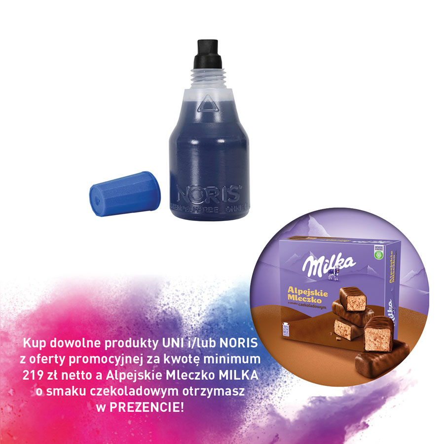 jm.: Kup dowolne produkty UNI i/lub NORIS z oferty promocyjnej za kwotę minimum 219 zł netto a Alpejskie Mleczko MILKA o smaku czekoladowym otrzymasz w PREZENCIE!