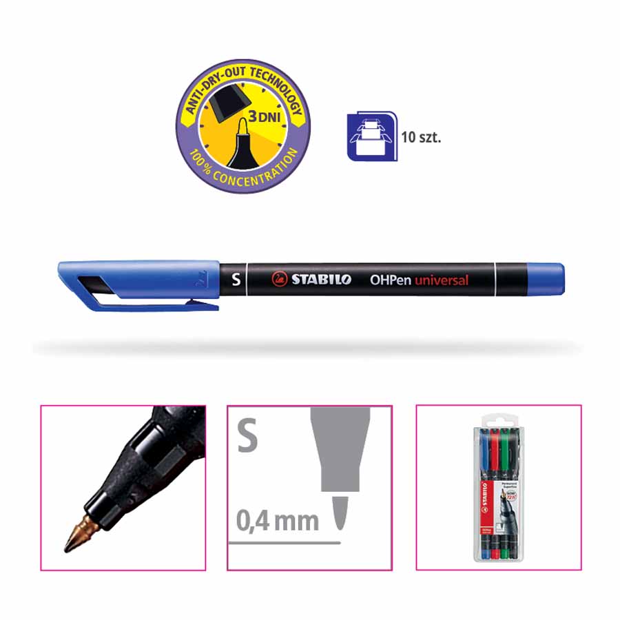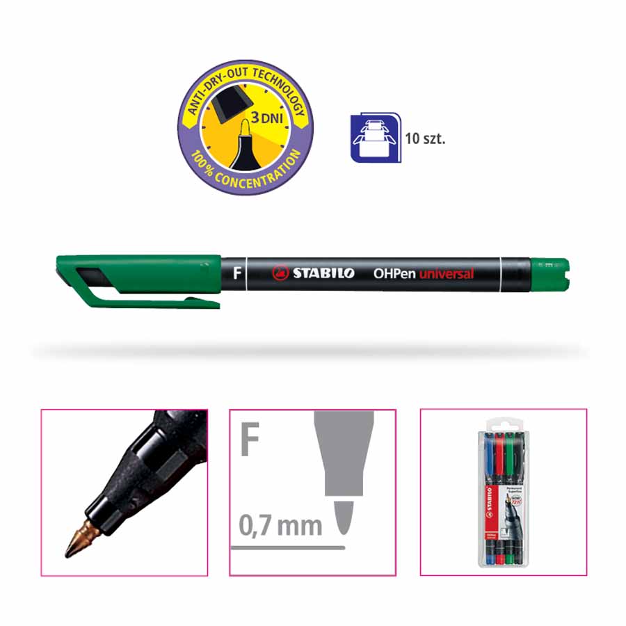 Tusz w foliopisie Rystor F schnie szybko, nie rozmazuje się, jest wodoodporny i odporny na działanie promieni słonecznych. Dzięki temu oznaczenia są trwałe i wyraźne, a intensywność barw pozostaje niezmieniona.